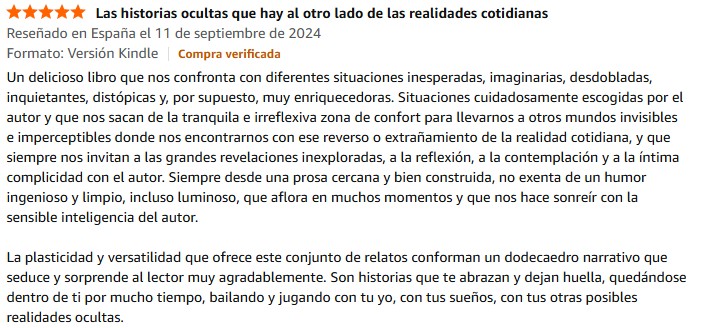 Doce historias, una detrás de otra, relatos cortos y lo que podríamos llamar cuentos fantásticos, también de ciencia ficción y misterio. Un ejercicio para crear mundos irreales aunque algunos bien podrían ser posibles.